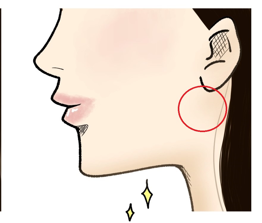 まずは肩こりを引き起こしやすい咀嚼筋の位置を確認します。