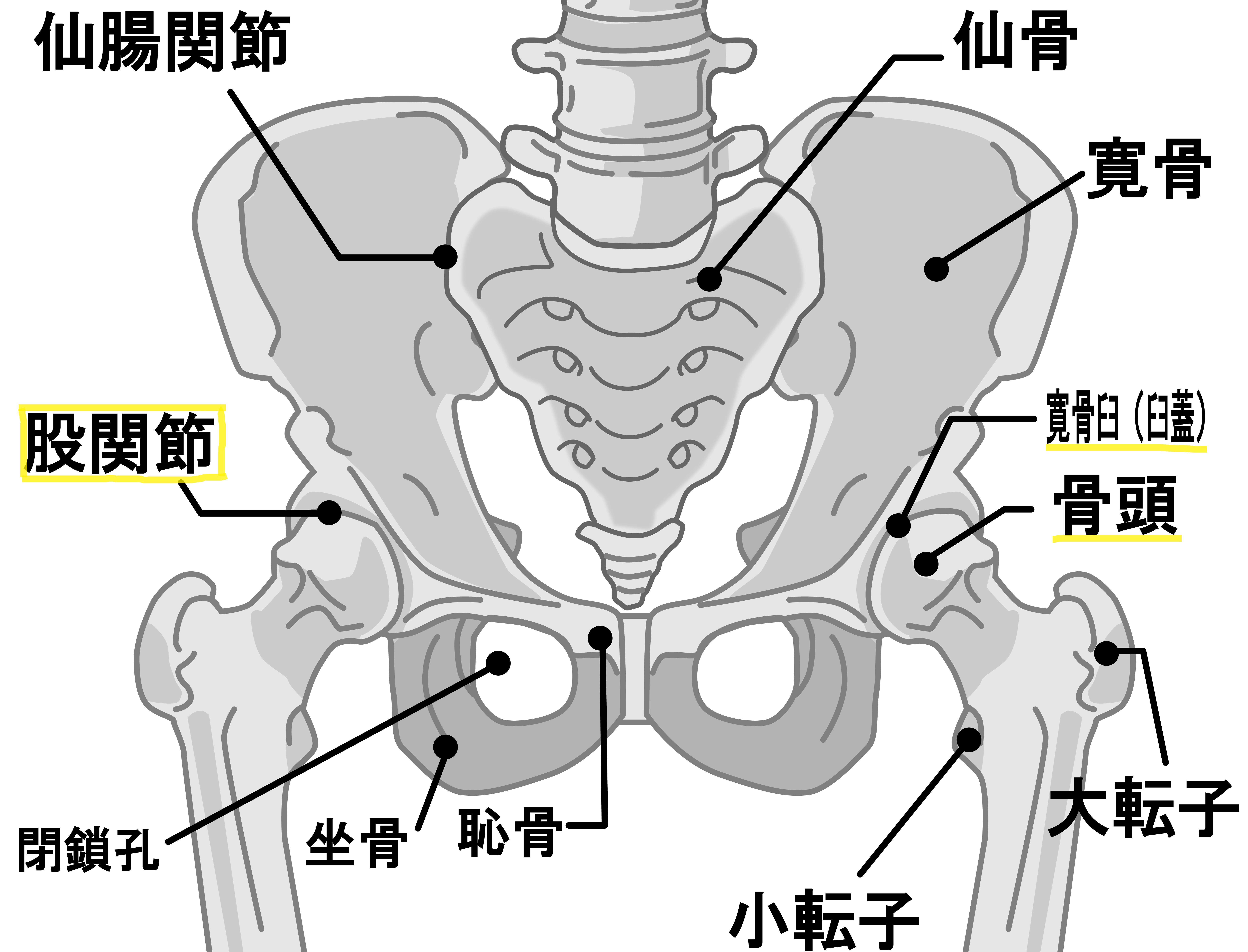 股関節は大腿骨(だいたいこつ)の上端にある骨頭(こっとう)と呼ばれる球状の部分が、骨盤の寛骨臼(かんこつきゅう)と呼ばれるソケットに、はまり込むような形になっています。