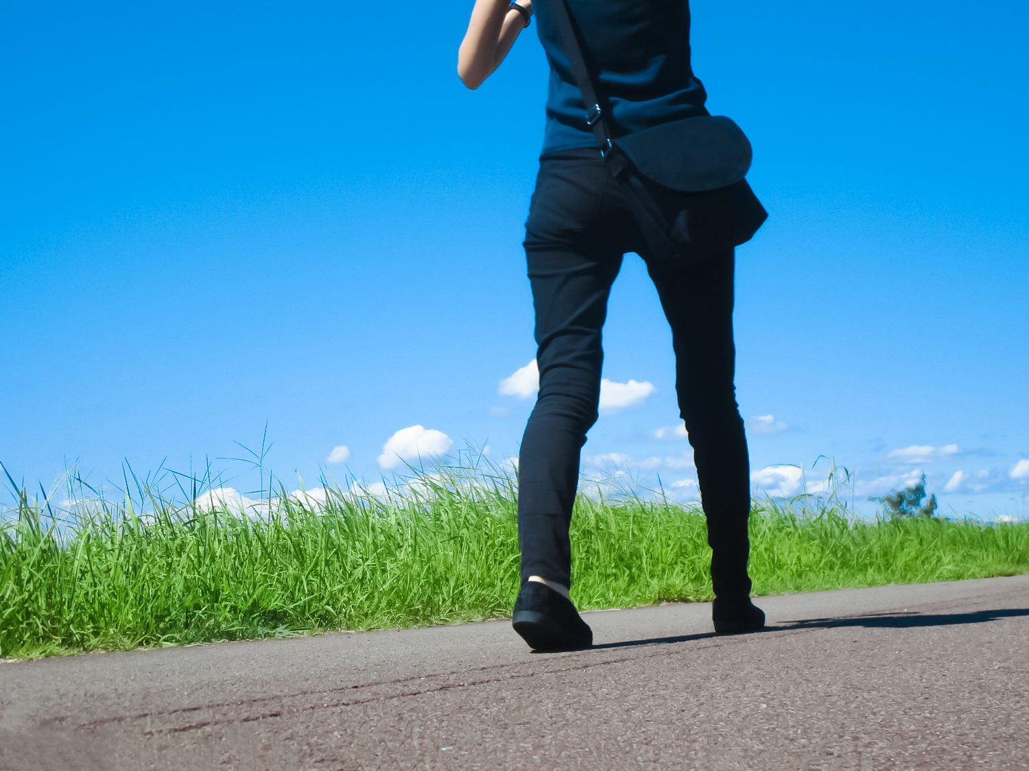 まずは、その場で足踏みをする感覚で歩幅を狭めてお尻の筋肉が働きやすくなるように歩いてみましょう