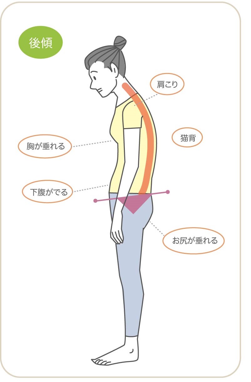 骨盤が倒れることで、さまざまな身体の変化につながることがあります。