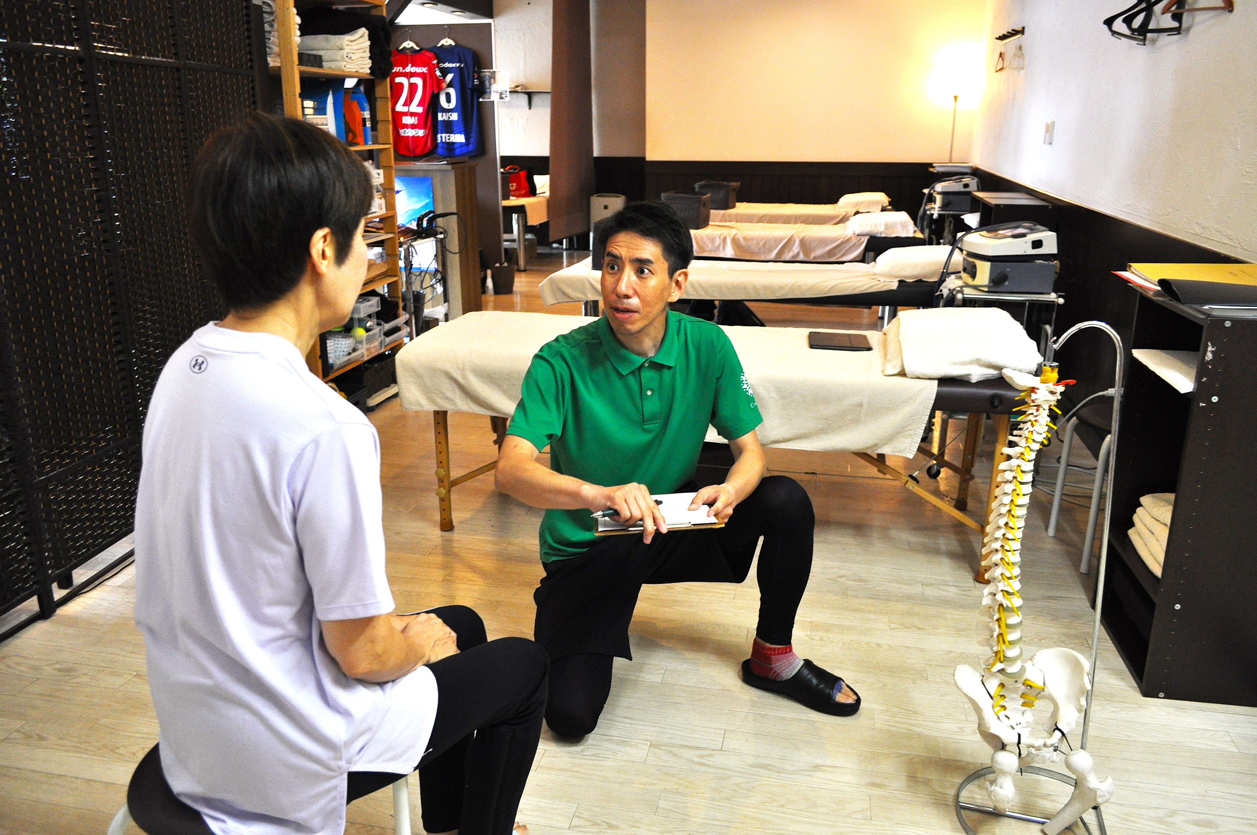 まず、身体の状態を確認するため、「痛みの発生ポイント」や「ライフスタイル」、「どんな時に痛むのか」などをしっかりとヒアリングしながら、痛みの原因を一緒に探っていきます。