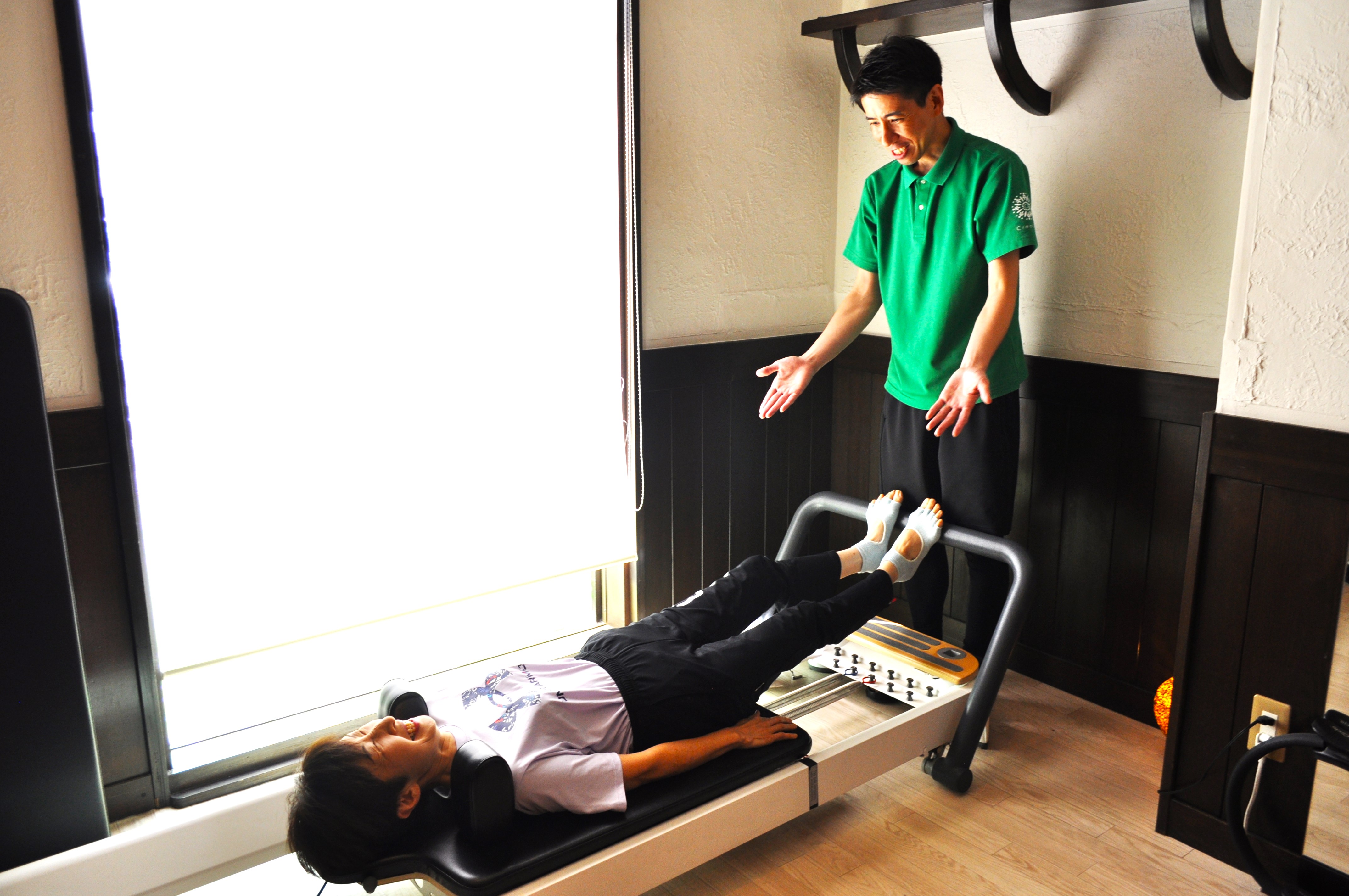 マシンピラティスのエクササイズで運動を取り入れたアプローチも行っていました。