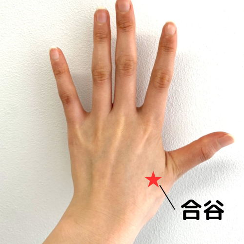 親指と人差し指の骨が交わるくぼみに位置するツボで、やや人差し指側にあります。親指の付け根がズキズキと痛む時、反対の手の親指で合谷あたりを3~5秒を目安に、気持ちいいと感じる程度の強さで押して、ゆっくりと離すのを数回繰り返してみましょう。痛みが和らぐ効果が期待できます。